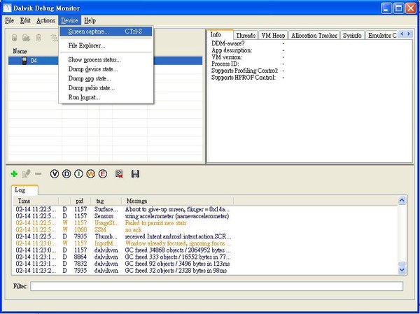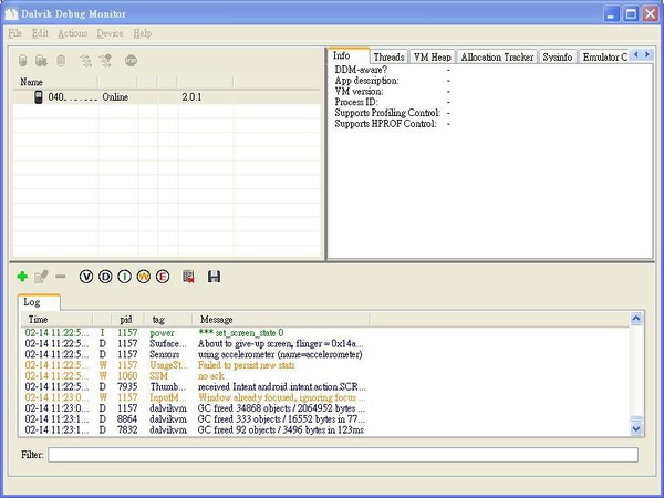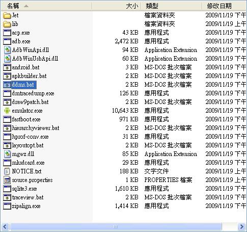 接著用檔案總管到SDK的tools目錄裡有個ddms.bat,點兩下執行他