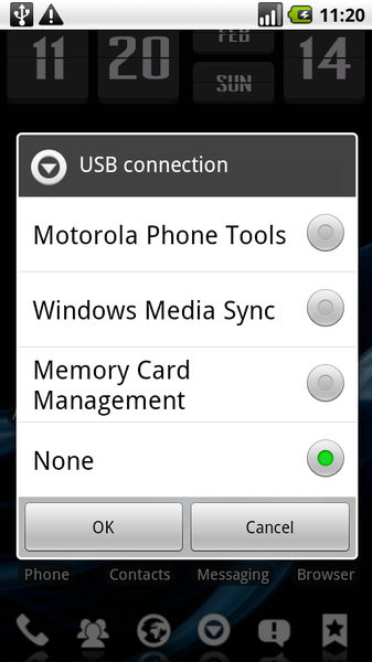 先到手機上,把狀態列叫出來(螢幕頂端MOTOROLA處開始往下畫)