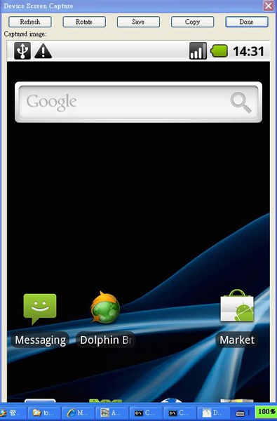 會跳出一個新視窗,裡面是手機螢幕的抓圖,可以點Refresh來更新或Save存檔,